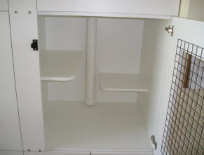 and/or ledge and food and water bowls that are cleaned and refreshed